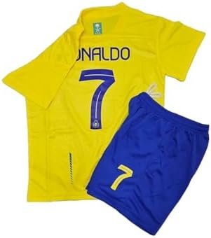 Ronaldo CR7 Jersey kids uniform AL Nassr Fc Saudi arabia WASHING INSTRUCTIONS: Hand Wash Wash only in Cold Water Air Dry Only Club crest and brand logo placed on the Left upper. Free Matching Short This item is in Youth sizes.