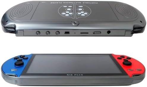 Upgraded X12 Plus 7-inch HD Screen Handheld Portable MP5, 10000+ Free Games, Video Game Machine 16GB ROM, Support GBC/GBA/NES/MD/SMC/SFC Games Children’s Gifts True color screen: 7-inch 16 million 16:9 HD screen, resolution 1280*720 Game format: Built-in 22800 games, support PS1/MAME/GBA/GBC/GB/NES/SFC/FC/SMD/MD and other ten emulators Battery: 2500 MAH/3.85V/9.6WH/OUTPUT 4.4V Battery life: approximately: 5-8 hours Standby time: approximately: 20-25 days TV output: Support HDMI high-definition TV output, which can be connected to the TV to play games and watch movies Video playback: No conversion is required, and it supports RM/VB/VA/I/FL/V and other formats Music playback: Support for MP3/WM/A/OGG/ACC/WA/V support APE/FLAC lossless music Configure memory: Built-in 16G memory, support 128M to 64GBTF card expansion Digital recordings: Built-in high-definition microphone, high-quality recording and normal recording for you to choose Image browsing: Support JPEG, BMP, GIF, TIF, PNG image browsing Reading Texts: TXT e-book, unique bookmark function, easy to read anytime, anywhere Speaker: High quality double horn stereo speaker Multilingual: English/Polish/Japanese/Korean/French/German/Italian/Turkish/Portuguese/Spanish/Dutch/Russian. (Default English) Packaging Accessories: 480G, 28.5*13.5*5.2CM, earphone cable, data cable, manual, AV cable Package Include: 1 x Game Console 1 x Earphone 1 x USB Data cable 1 x User manual 1 x AV cable