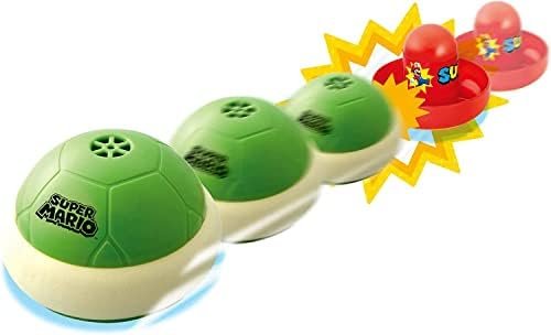 High quality games from Epoch and iconic Super Mario game play comes together in the newest line of sports action games from Epoch Games. Super Mario Hover Shell Strike includes two paddles and battery operated Koopa shell which glides on a cushion of air! Opportunities for play are endless with no game base, meaning you can play on a tabletop, on hardwood floor or even on low pile carpet. Lightweight and compact design also makes this game travel-friendly. The object of the game is to strike Koopa’s shell and get it past your opponent’s paddle. Suitable for the whole family, including children ages 4 and older.