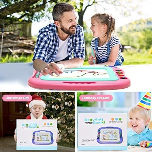 Product description A small step towards becoming a little painter in the future, just bring this magnetic drawing board toddler toy for kids. Early childhood education is very important. Maybe a painter is coming with the Etch a drawing sketch pad Develop brain and creativity.Fly imagination and infinite painting. Coordinate eye-hand fine motor skillsDevelop clean and tidy habitObtain visual perception and problem-solving skills – Kids always love to sketch on the magna drawing doodle board for hours. – Uncommon with the traditional painting paper, the colorful magnetic drawing board designed with a easy slide eraser. This magnetic doodle board can ensure your kid and house clean. No more pigment, ink to stain your kid’s clothes, face and no more mess. Magnetic Drawing Board, Best Educational toddler Toy Gift For 3 4 5 6 Years Old Girls Boys. Magnetic doodle board set is an ideal learning toy for preschool children. This magnetic drawing board is erasable & no dust design, kids can clear pictures and redraw easily on the doodle board. Prevent inhalation of dirty crayons, chalk powder, ink, pigment and kid won’t draw on walls & face. No mess to parents any more. Specifications: Materials: Non-Toxic ABS high quality plastic Redesigned with rounded edges and soft curves to eliminate potential injuries. Note: 1. Black dots may occur on screen in low temperature which can be removed by repeatedly drawing on it. 2. Recommend Ages: 3 Years and up 3. Slide the eraser slowly to wipe out the drawing, in order to completely clean. 4. Choking hazard. Small parts, not for children under 3 years. Package Content: 1 × Magnetic Drawing Board 1 × Magnetic Writing Pen 4 × Super Stamps What Will vusum Magnetic Drawing Tablet Erasable Pad Bring to You and Kid? – Colorful magnetic doodle board screen shows 4 colors (blue, red, green, yellow), more interesting than traditional gray sketch board. – Simply erasable magnetic writing board features sliding eraser,allowing drawing to be quickly and easily erased. – Interesting Magnetic drawing pad have 4 lovely stamps and string pen,inspiring their creativity and imagination. Large Etch A Gifts Sketch Drawing Board Colorful Magnet Erasable Pad Frame dimension: Approx. 15.3×11.8 inches Drawing Area: Approx. 9.2×6.5 inches -Large size drawing board toddler toys for 3 4 5 6 7 year old boys girls, big enough for two kids drawing, provides roomy space to allow your kids to fully play with their imagination and creativity -Additionally, the lightweight construction of the drawing board and its round edge handle makes it portable to carry. No Mess, Solve Mother’s Troblues. – The Erasable Magnetic Drawing Board will help to Leave mess-up away, and the interesting magnetic doodle writing pad can keep little hands busy. – The large sketching pad is lightweight and convenient, allows your kids to practice drawing and writing everywhere.exploring child’s creativity. – Take your little child to a colorful imaginative world through their creative writing and drawing with our sketch board. Parent-child Happy Time – Enjoy your family time with drawing board at home. Your kids also can express their thought via writing on the big magnetic drawing doard Funny Early Educational Toy – Draw,write,and play games on the erasable sketch pad with Useful numbers 0-9 and letters on the top, best learning toy for preschool boys & girls Insprie Creativity and Imagination – Cultivate children’s color and shape recognition ability, encourages kids to draw on the sketch pad, explore their imagination. From the brand Magnetic Drawing Board Toys Vusum is a trusted toy brand offering safe, fun, affordable toys that inspire creativity learning while meeting strict safety standards Previous page Toddler Toys for Ages 2-4 Vusum is a trusted toy brand focused on safe, fun, and affordable toys for children. We ensure every toy is designed to inspire creativity and learning while meeting strict safety standards. Toddler Toys for Ages 2-4 Toddler Toys Magnetic Drawing Board,Large Doodle Board Toddler Toys Next page