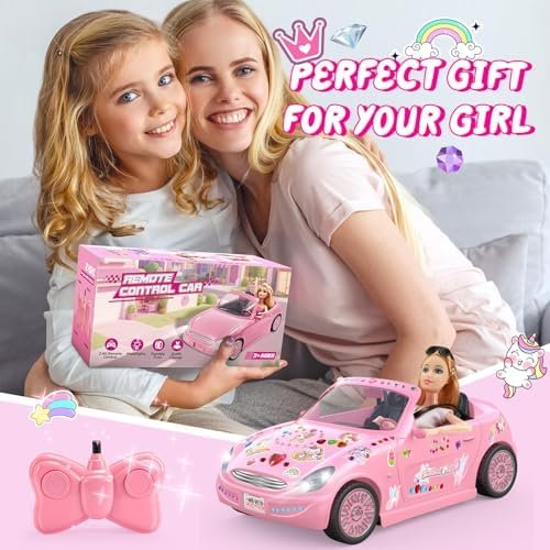RC Cars, Remote Control Car with Doll and Sticker for Girls,2.4GHz Rechargeable RC Car Birthday Gift for 3 4 5 6 7 8 9 10 Year Old Girl,Great Girls Toys Birthday Gifts for Ages 3-10 Years Old Girls