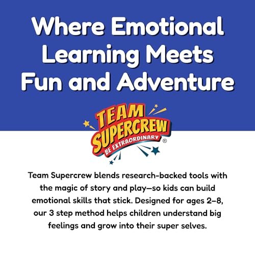 From the brand Previous page Our Mission Team Supercrew is an emotional learning brand that empowers kids to find their own superpowers – to be brave, kind, calm, and have grit! Founded by a teacher and a writer, in collaboration with child psychologists, Team Supercrew was created to bring fun, connection, and adventure to emotional learning. The Science Team Supercrew books are rooted in CBT (cognitive behavioral therapy) and help kids understand how their thoughts, feelings, and actions are connected. Learning CBT skills early on helps kids develop emotional wellness for life. The Learning Kids learn best through story and play. Team Supercrew engages kids with fun stories, relatable characters, and cuddly toys. All backed by science (CBT) to help kids learn to recognize and manage their emotions. Our Community We welcome you to explore Team Supercrew and meet the characters that are empowering kids around the world! Next page From the Publisher Team Supercrew – Emotions and Powers – 4 Book Box Set Team Supercrew – Feelings to the Rescue – 4 Book Box Set (books 5–8): Social … Team Supercrew SOS Kit – 83 Activity Cards for Kids Ages 2-8+ | Emotional Reg… Team Supercrew Bundle – Emotions and Powers – 4 Book Box Set and 4 Plush Supe… Benny the Brave in The First Day Jitters (Team Supercrew, 1) Chloe the Calm in the Bedtime Blues (Team Supercrew, 3) Add to Cart Add to Cart Add to Cart Add to Cart Add to Cart Add to Cart Customer Reviews 4.5 out of 5 stars 728 4.9 out of 5 stars 38 4.7 out of 5 stars 77 3.9 out of 5 stars 7 4.6 out of 5 stars 372 4.4 out of 5 stars 132 Price $35.00$35.00 $39.39$39.39 $42.69$42.69 $149.49$149.49 $10.53$10.53 $15.35$15.35 How It Helps Builds emotional regulation skills Helps kids understand and manage emotions Proven support for tantrums and meltdowns Builds emotional regulation skills through story and play Helps build confidence in new situations Teaches calming strategies through story